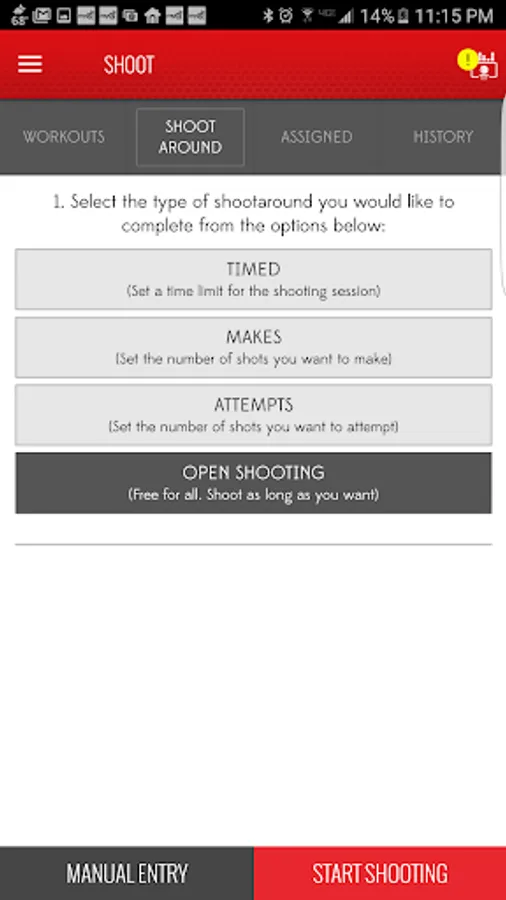 Shot location tracking is tracked using the locations programmed in The Gun 10K console. Choose any of the locations, 2PT or 3PT shots, freethrows, and view your results in the app.
