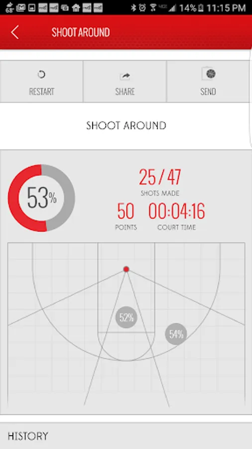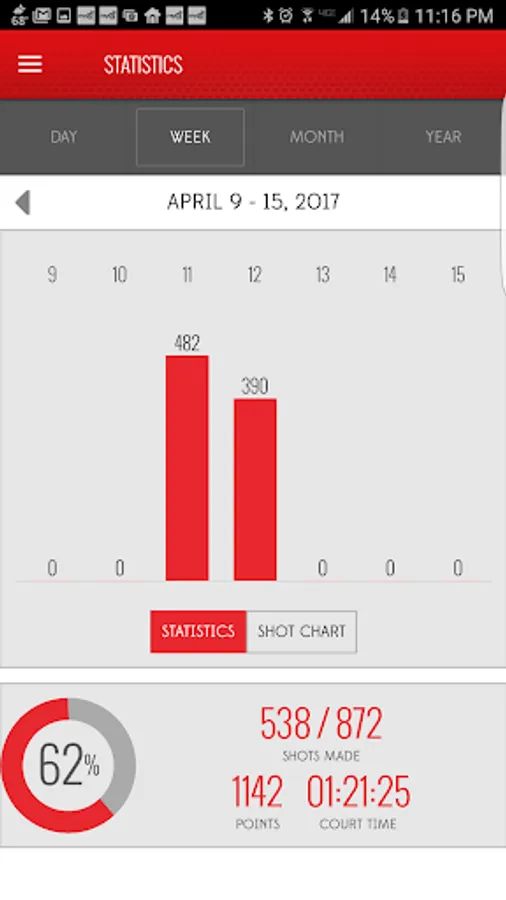 Provide real-time shooting statistics: Review all of your workouts by day, month, year or overall career. See your shooting percentages, points, court time and personal shot map.