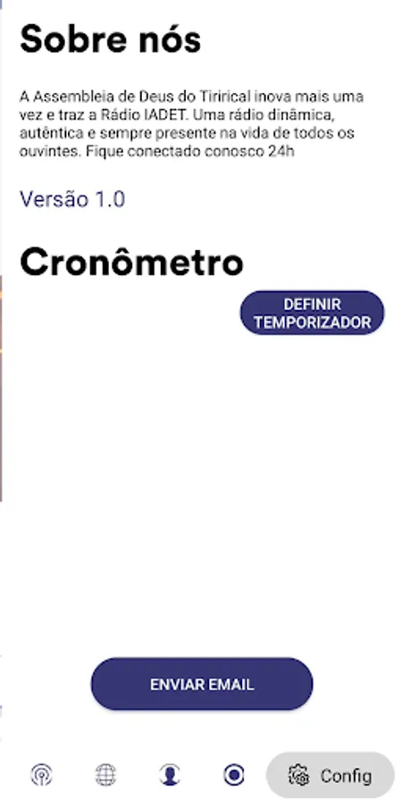• Play / Stop: When you open the app it automatically starts transmitting audio from the radio, to stop it just click on the center of the screen and the app stops playing and to start again just click again on center of the screen.