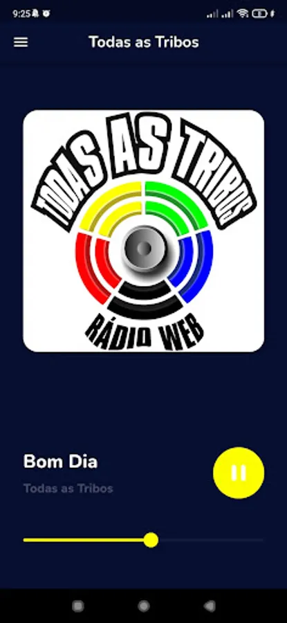 • Play / Stop: When you open the app it automatically starts transmitting audio from the radio, to stop it just click on the center of the screen and the app stops playing and to start again just click again on center of the screen.
