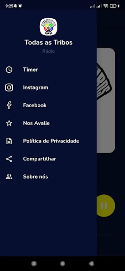 • Share: With this button the listener / user of the app goes to the sharing screen, he chooses where he wants to share the link of the playstore.