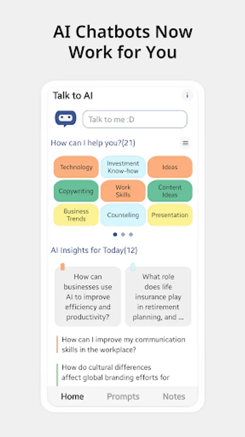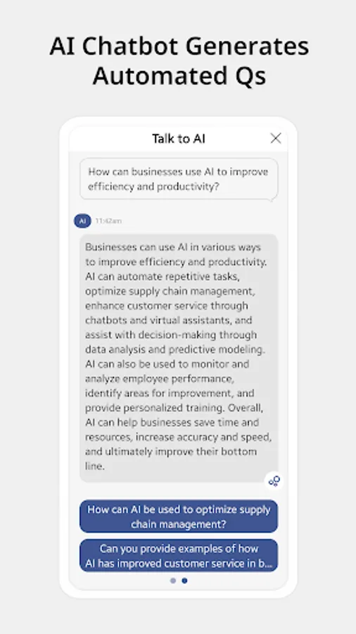 Our chatbot generates questions automatically, allowing you to chat with AI without the need for keyboard inputs. By engaging in conversation, you can naturally discover solutions to your problems.