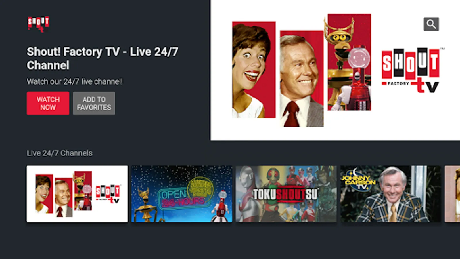 Shout! Factory TV is a premiere digital entertainment destination that brings you timeless and contemporary cult favorites for pop culture fans. With a uniquely curated entertainment library, the channel offers an unrivaled blend of cult TV shows, movies, comedy, original specials and more.