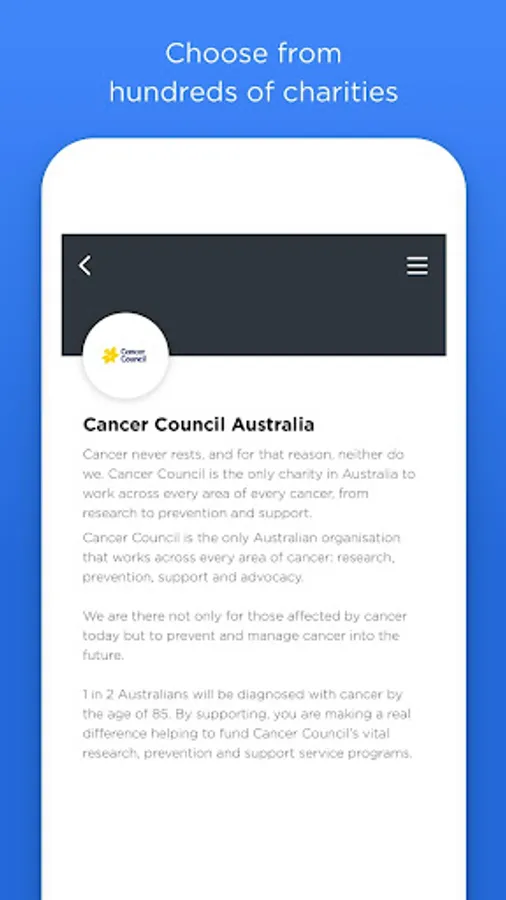 Users can download the App and donate to their favourite causes within minutes with no account creation required and no lengthy sign up forms. Using card.io and Facebook Connect, users can donate using credit card or PayPal. All donations are receipted once successfully processed and all donations can be shared directly to Facebook or Twitter.