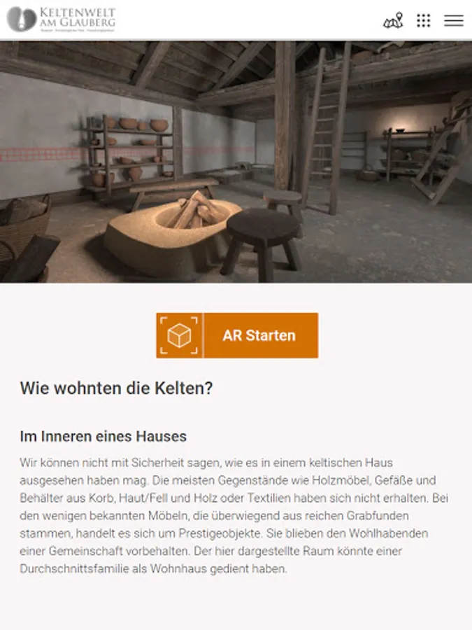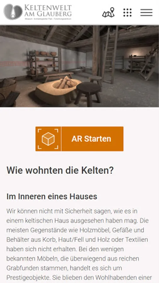 The Celtic World AR app offers you the opportunity to immerse yourself in the world of Celtic research. During a walk through the archaeological park, you will be given insights into the architecture and life of these early inhabitants of the Glauberg. You can choose 6 stations and get information about the excavations, findings and the process of digital reconstruction, as well as the opportunity to look at the Celtic buildings in AR. One of the stations lets you visit the site of the statue of the Celtic prince from Glauberg in a playful way.