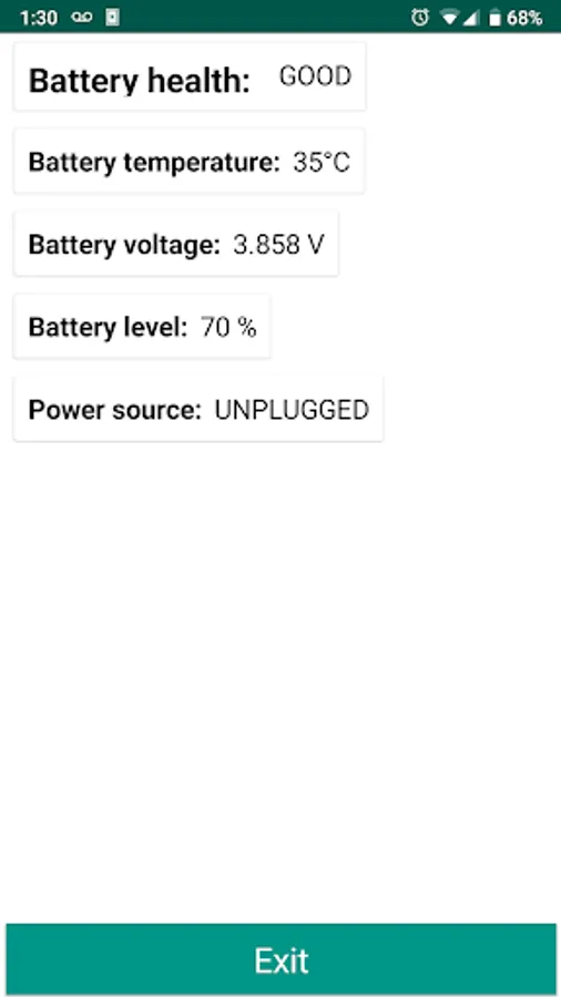 Show battery health displays your battery health, temperature, voltage, level and power source(charging)