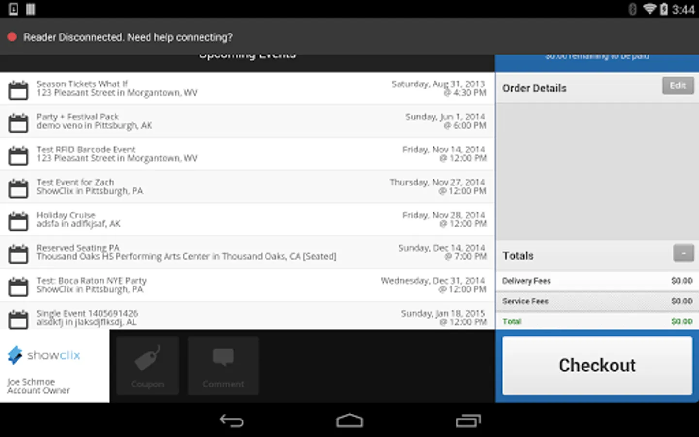 With ShowClix’s Box Office app, you can handle point-of-sale transactions for both general admission and reserved seating events. While supporting features like discounts and coupons, the app lets you create reservations, run multiple payment types, take partial payments, and split tender payments.