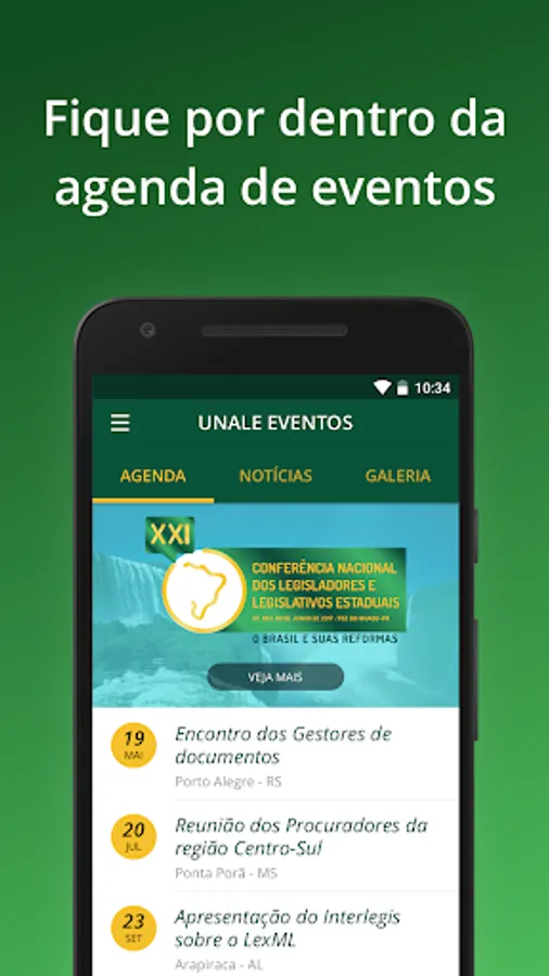 events application of UNALE. Has access to the entire schedule, information and services in UNALE events