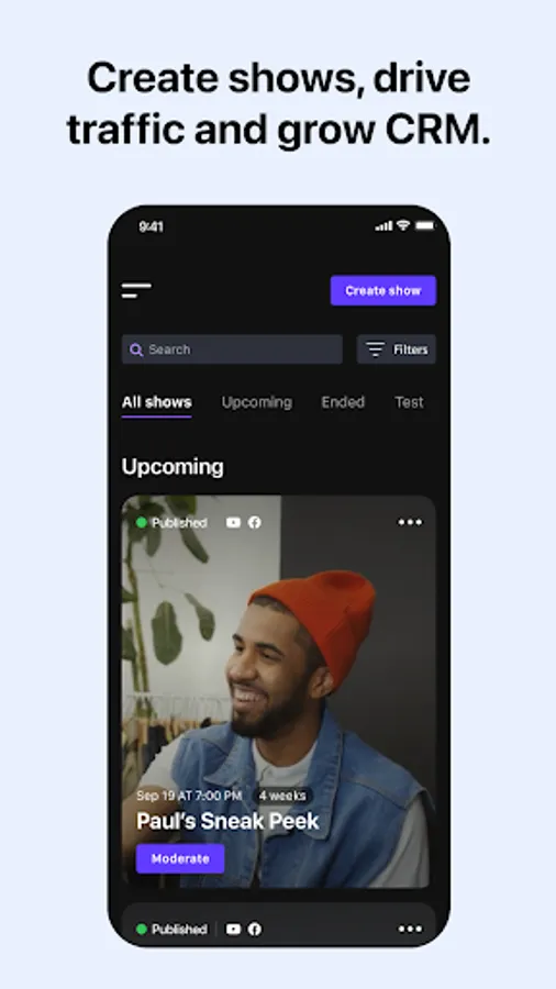 Go live from your phone with the Showday app, or grant access to hosts anywhere.