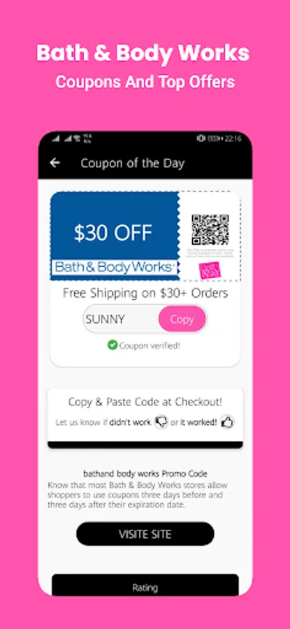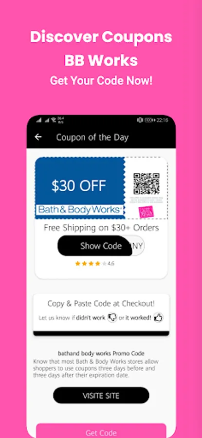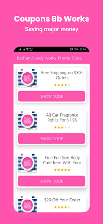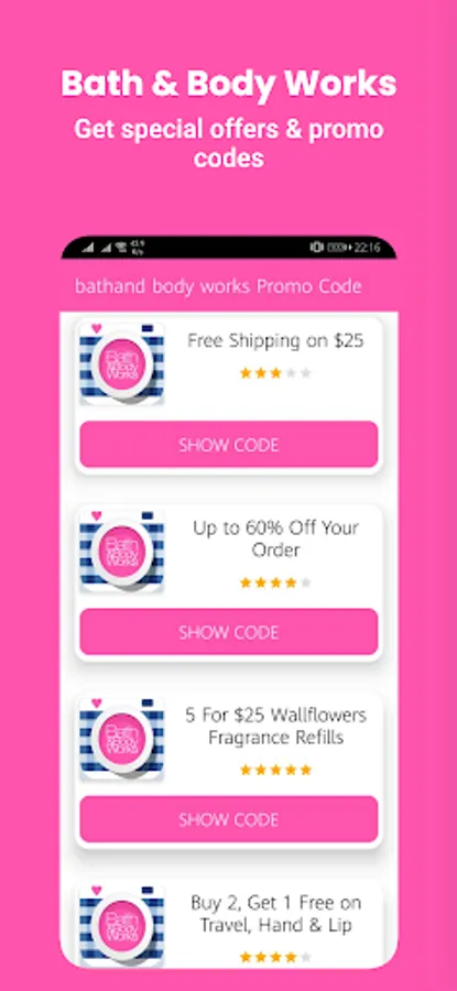 This My Bath & Body Works promo code discount app lets you find good coupons and hot deals in black Friday, xmas, noel, new year and all others important shopping dates