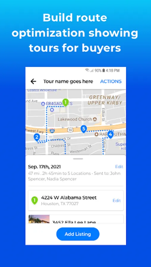 • Build route optimization showing tours for buyers.