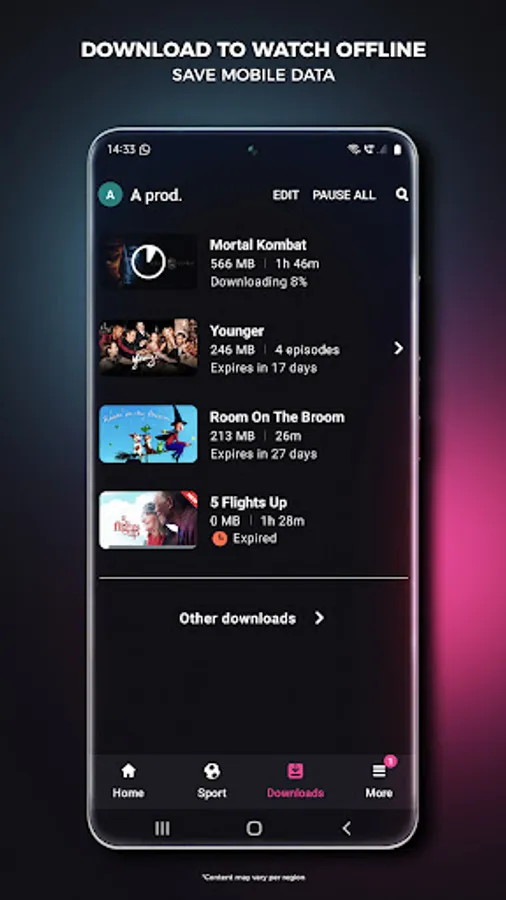 - Download up to 25 shows to your smartphone or tablet when connected to WiFi and enjoy them later