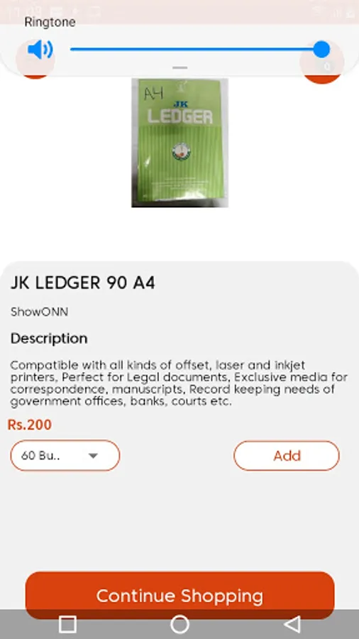SHOWONN one stop paper solution providing free online shopping app. Lets you purchase wide range of papers like a4, a3,a5, Bond Paper, FS Paper, Ledger etc with multiple brands like JK, TRIDENT, COPY GOLD, WESCO, TNPL, REFLECTION, XCELENT, NR with Home Delivery!