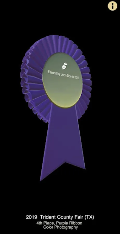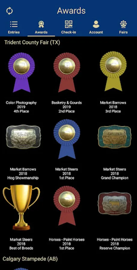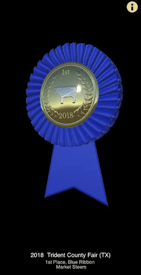 Now you can keep all your awards in a digital 'Awards' room which displays your results as realistic 3-D ribbons, belt buckles and trophies. Each award is beautifully customized with the exhibitor name, fair name, year won, and description of the entry as a highly detailed virtual ribbon, belt buckle or trophy. For example, a Grand Champion Market Steer exhibitor will receive a customized emerald stone inlaid belt buckle with a steer engraved in gold. A first place quilt exhibitor will receive a detailed blue ribbon with a symbol of a quilt engraved on the front and their information on the back of the ribbon. Even spin the award around to 'feel' the object!