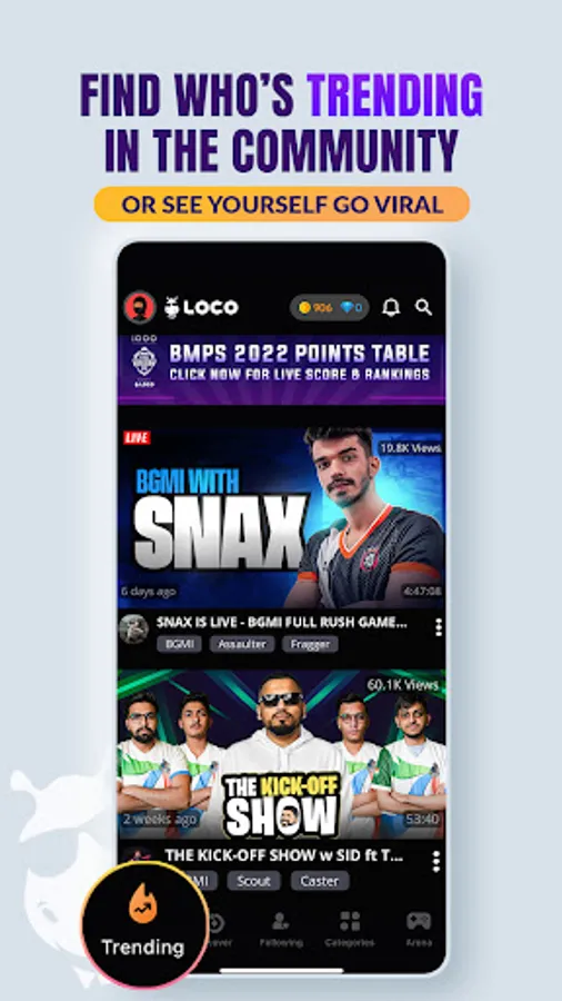 You can also sign up to stream your games live on Loco right from the comforts of your home. Stream your favourite games on the app and build a follower base for yourself to become the next biggest eSports star