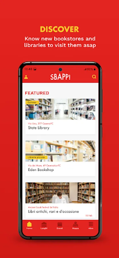 SBAPP refers to the role played by bookstores and libraries, physical or virtual places full of books. This app aims to connect all these locations in our territory, in order to help readers, not readers and tourists to get in touch with places which aren’t mere commercial establishments or book preservation institutions, instead venues where events and projects can be discovered.