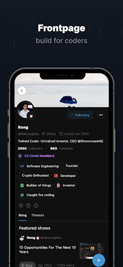 Showwcase is a professional network built and optimised for people that code (developers) to connect, build community, and find new opportunities.