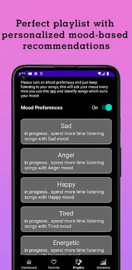 Discover new songs tailored to your mood with. Our technology learns your preferences and recommends songs based on your mood. Experience personalized playlists that perfectly match how you feel. Get an unforgettable musical experience with our mp3 player.
