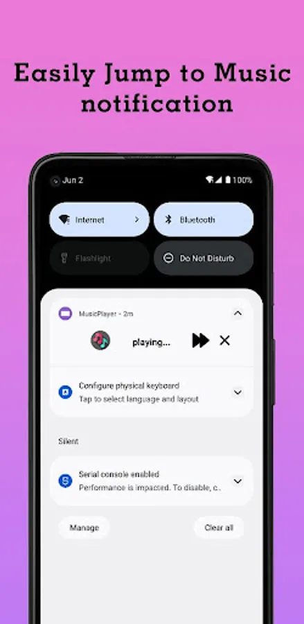 This mp3 player allows users to seamlessly switch between their notification panel and the app. With just one click, users can jump from browsing their notifications to enjoying their favorite songs. The player also offers a range of features, including a customizable equalizer and the ability to save playlists. Additionally, the app supports a variety of file formats, making it a versatile option for any music lover. With simple, intuitive controls and an unfussy design, it's the perfect choice for enjoying music on the go.
