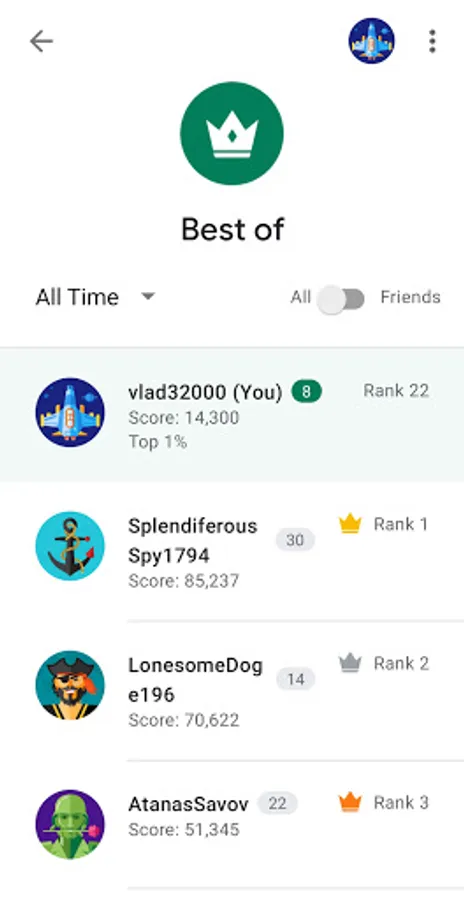 🔝 Leaderboard of best players from all over the world, you can compete with them!