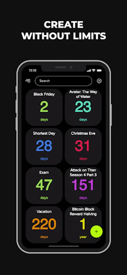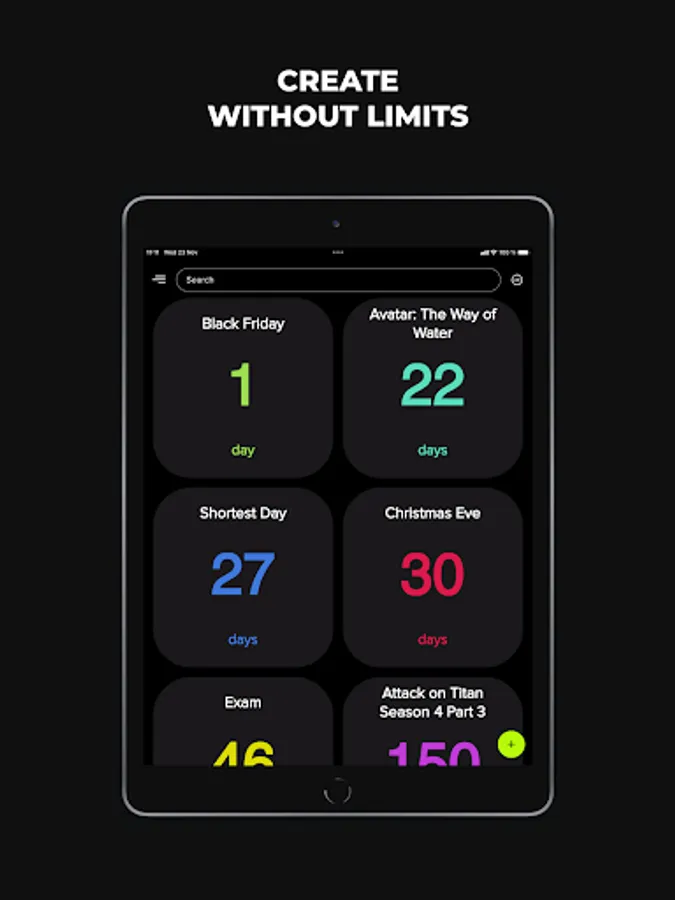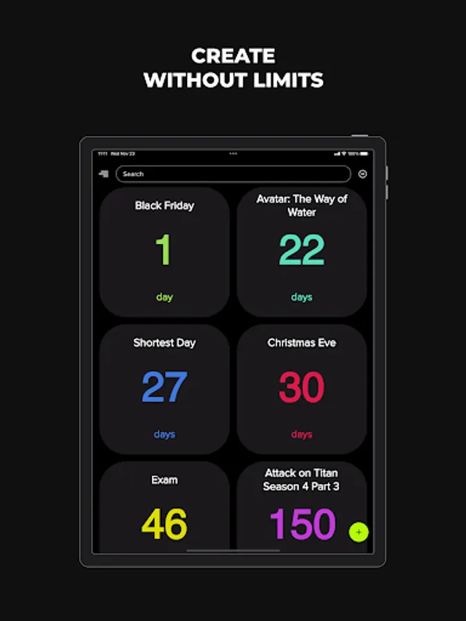 - Unlimited Countdowns: Create as many countdowns as you desire, with no limitations.