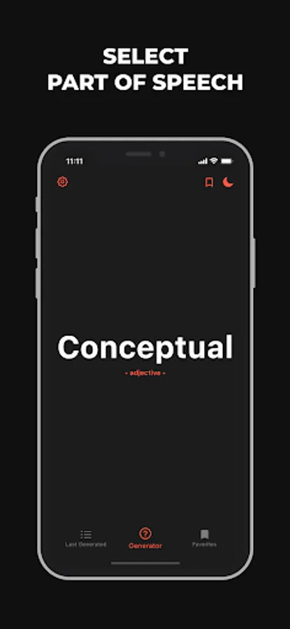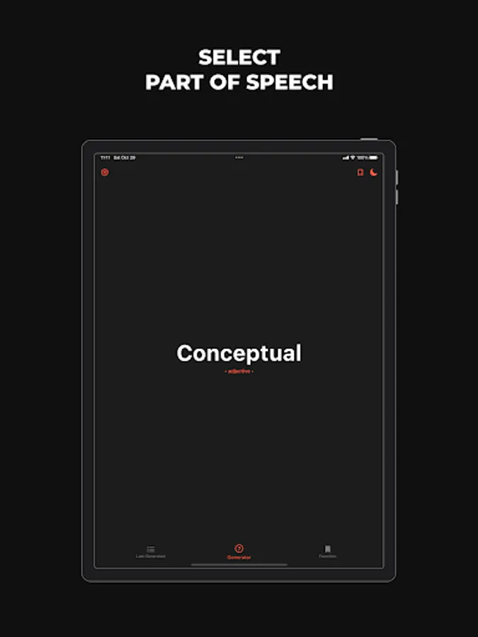 4. Parts of Speech: Choose between nouns, adjectives, or verbs to generate. This is particularly useful for language learners who want to focus on specific areas of vocabulary.