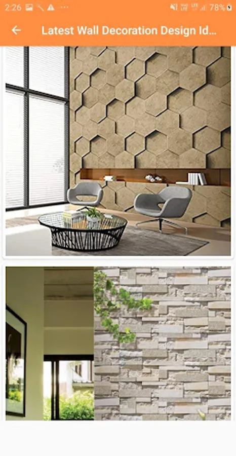You will find various design ideas related to Wall in this application. We have collected and accumulated some of the best Wall design ideas that you had been looking for. In this application the kind of Wall design ideas will leave you speechless and you will desire for more after going through the ideas given here.