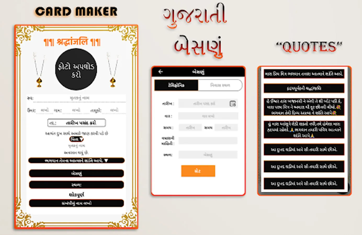 Shradhanjali Card Maker app can choose your selected language (Hindi-Gujarati) cards from here.