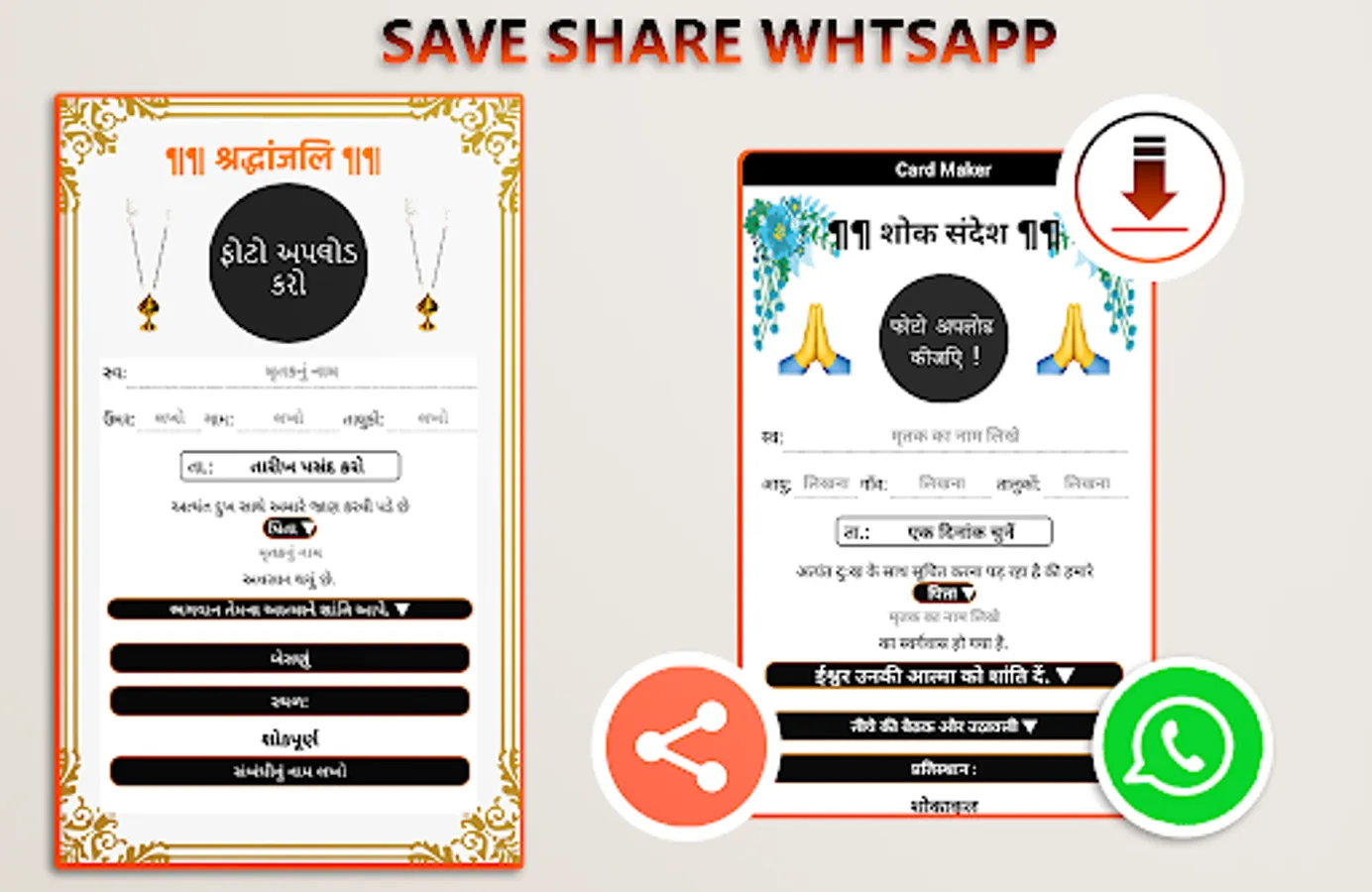 श्रद्धांजलि - શ્રદ્ધાંજલિ ( श्रद्धांजलि कार्ड मेकर) Shradhanjali Card RIP Maker is app helps for create cards in different languages formats in India.