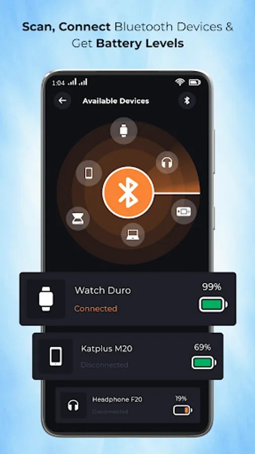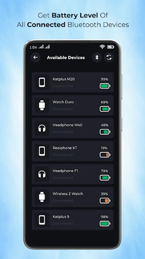 - Stay informed about the remaining power of your Bluetooth headphones, earbuds, or Bluetooth speakers in real-time.