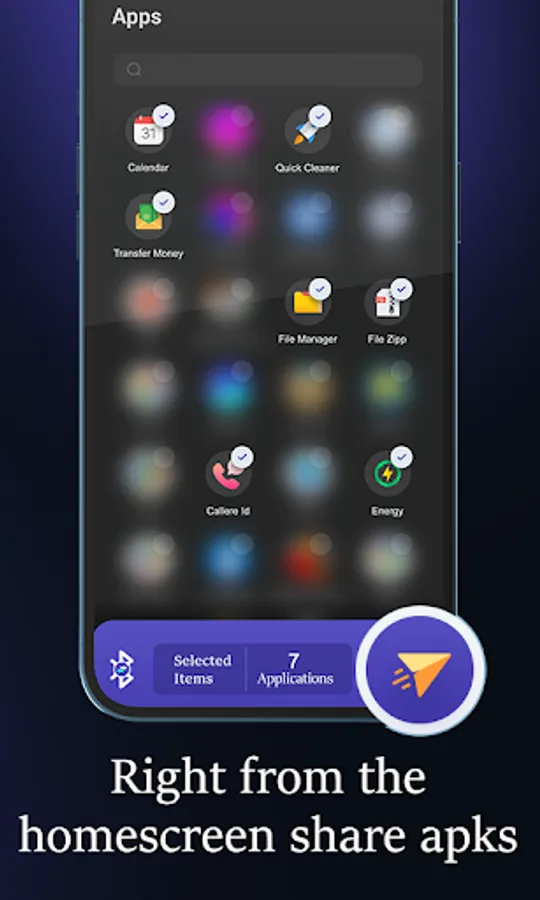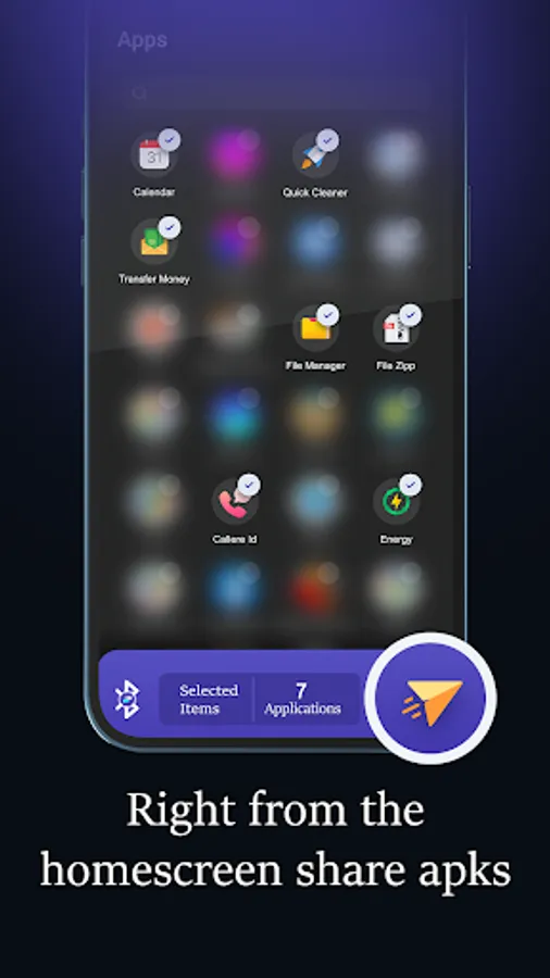 - Share your installed apk via Bluetooth to other Bluetooth connect phones.