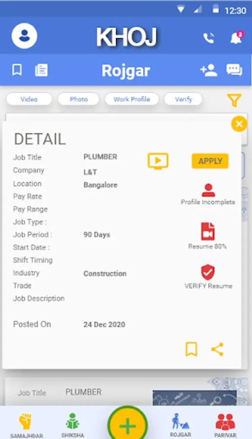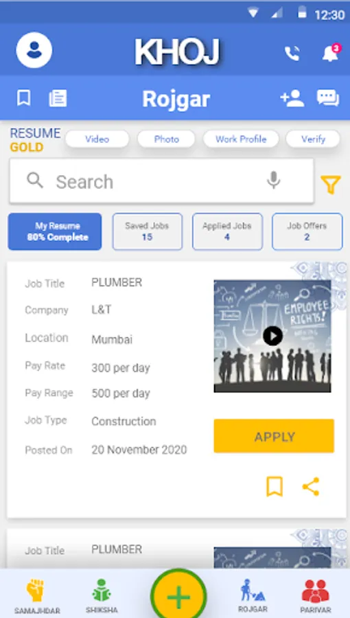 by the recruiters, Rozgar allows user to show their previous or latest work