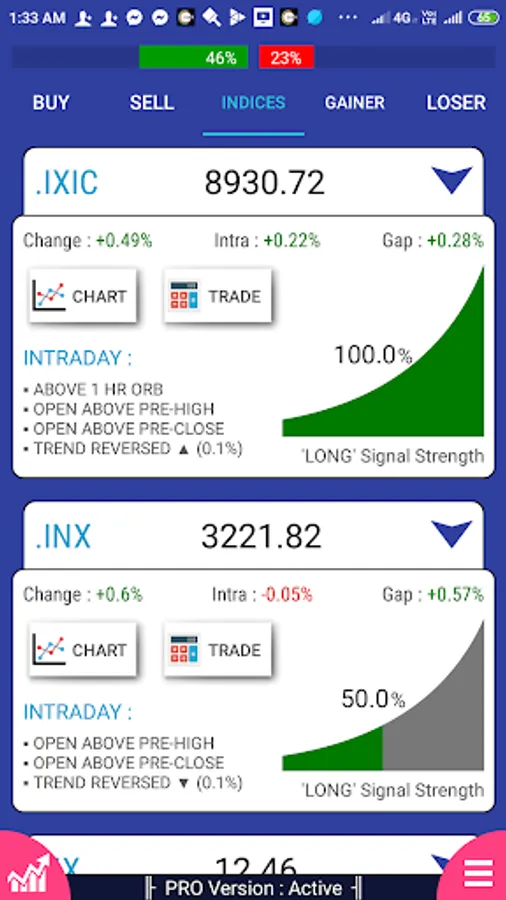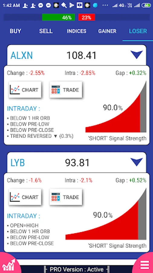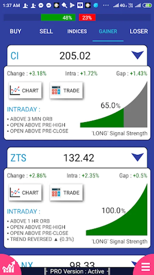 • For every stocks in the list , it shows the signal strength confidence in 0-100% scale.
