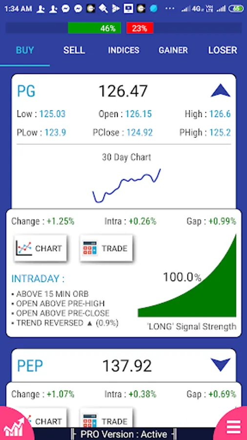 "Signal Strength is calculated in Real time with respect to Current Stock Price. It Updates continuously as the price changes"