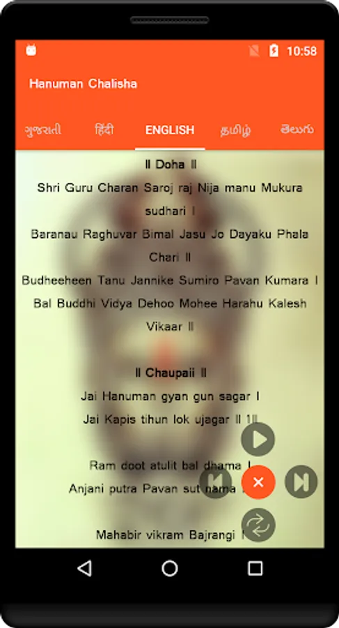 User can hear 3 Different types of audio of Hanuman Chalisa.