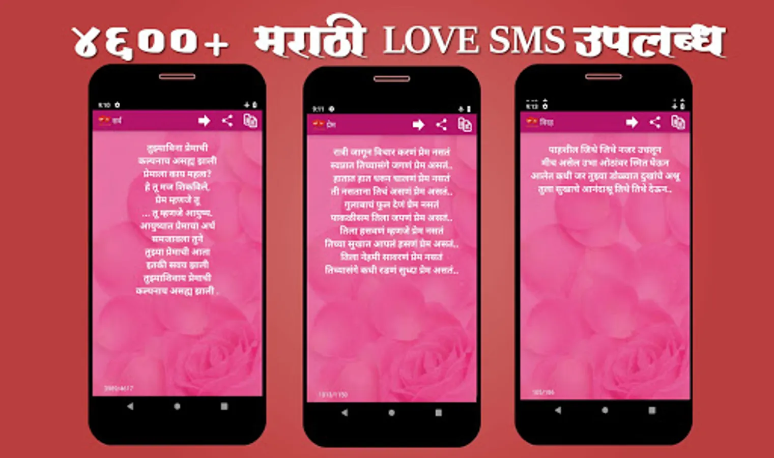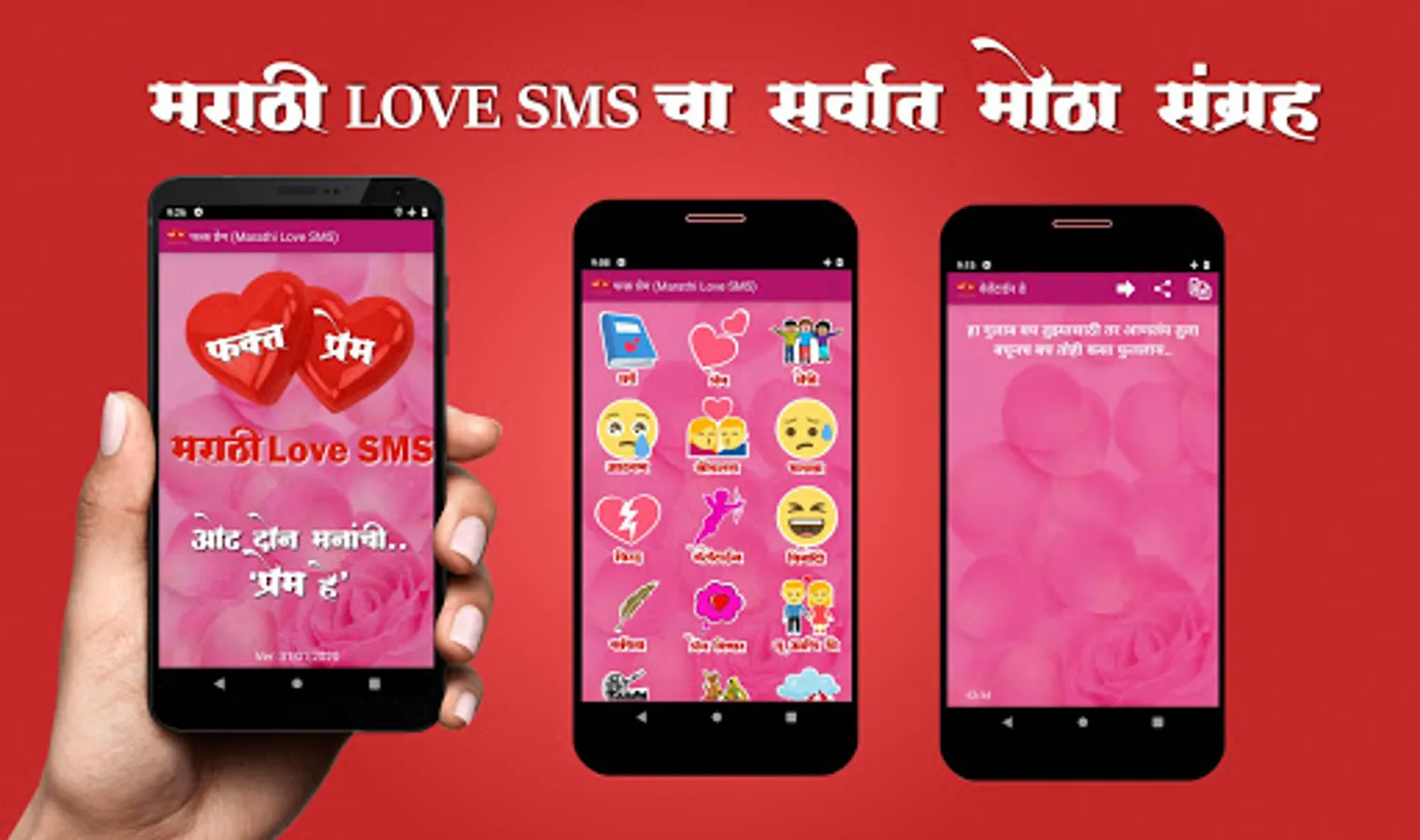 Check out "Phakt Prem (Marathi Love SMS)" which contains more than 5300+ love messages only in Marathi Language which is further categorized into 17 different categories: