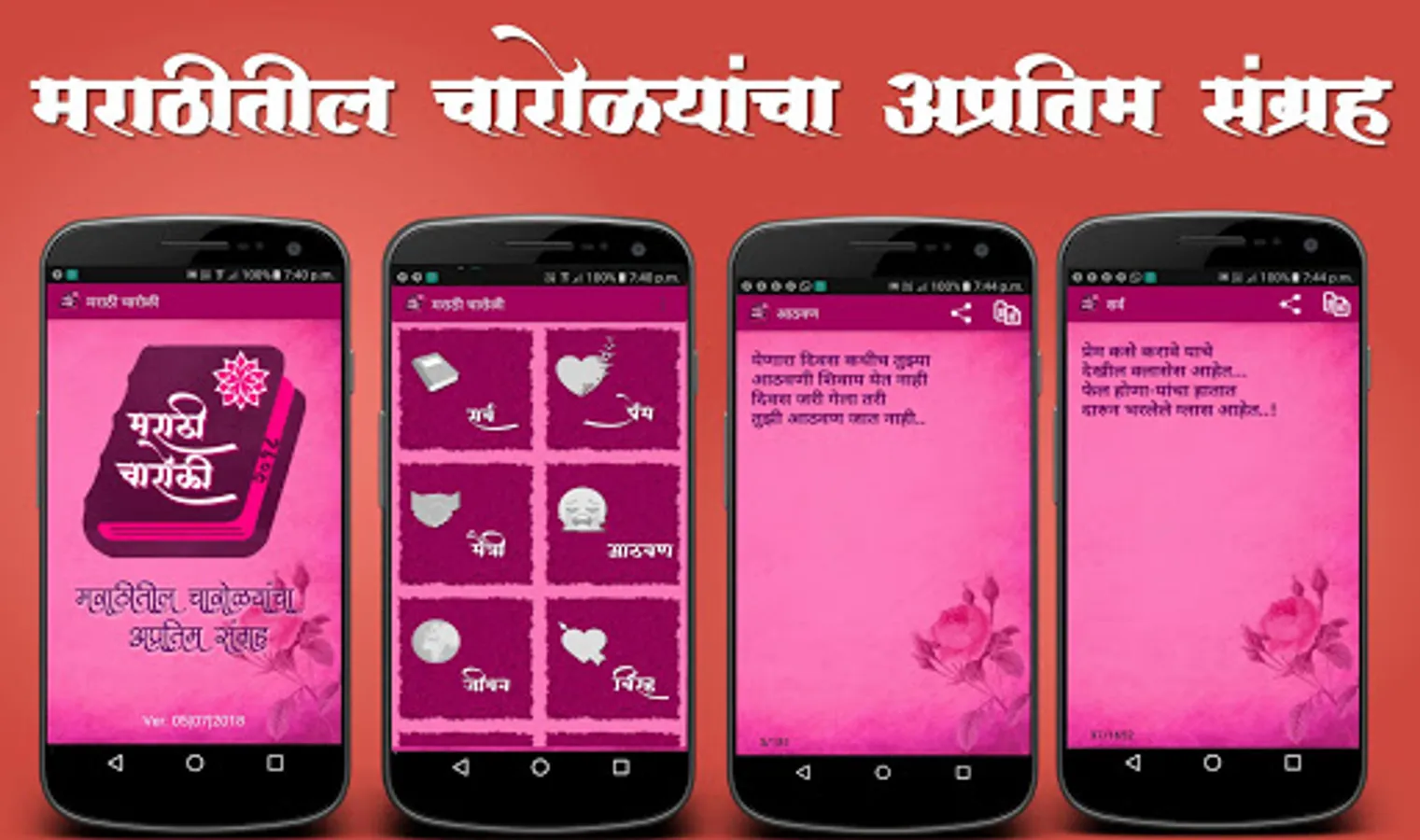 This app contains a collection of Charolis of various types like love, funny, emotional, etc. Do download this app and rate us...