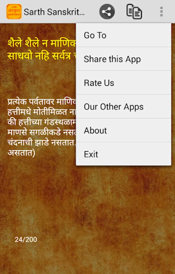 1] This app has 200 Sanskrit aphorisms or maxims.