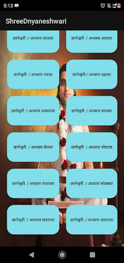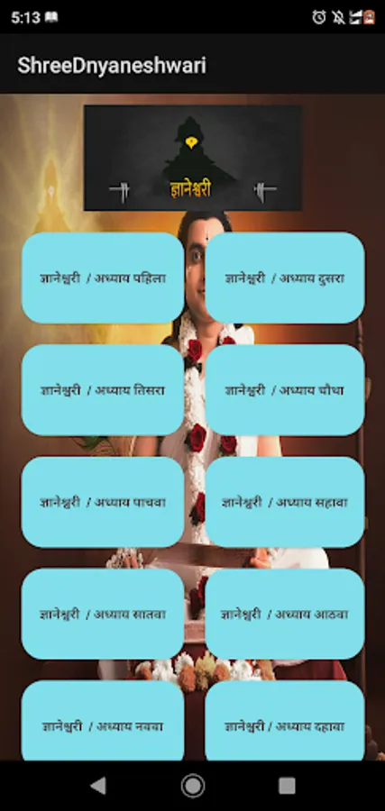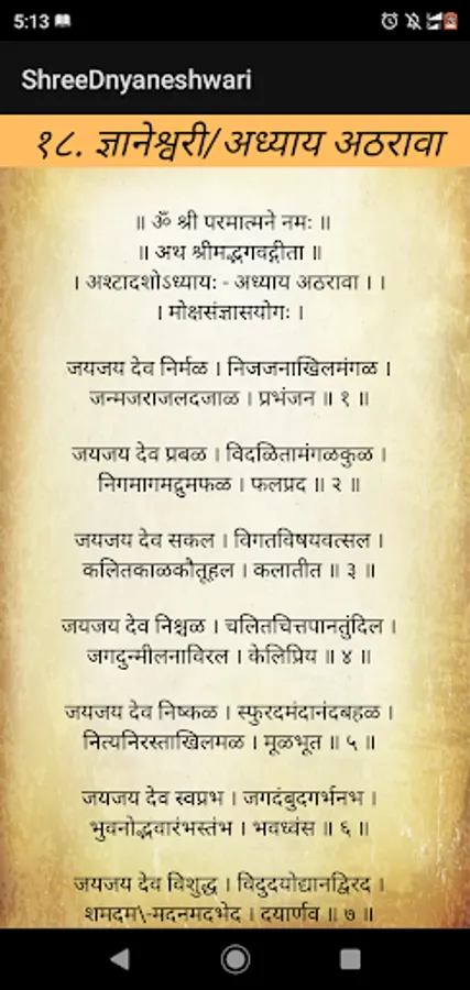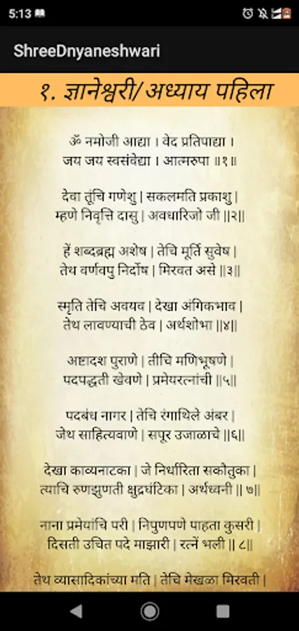 वारकरी संप्रदायाचे आधारस्तंभ मानले जाणारे सर्वश्रेष्ठ संत ज्ञानेश्वर ह्यांनी गीतेवरील रचना म्हणजे च भावार्थदीपिका किंवा ज्ञानेश्वरी. सर्वसामान्यांसाठी असणारा गीतेवरील ज्ञानेश्वरांचा हा भावार्थाने परिपूर्ण ग्रंथ, मराठीतील सर्वश्रेष्ठ ग्रंथ आहे. गोदावरीच्या काठी नेवासे येथे गावातील मंदिरात एका खांबाला टेकून ज्ञानेश्वरांनी ज्ञानेश्वरी सांगितली. या अँप्लिकेशन मध्ये संपूर्ण ज्ञानेश्वरी मराठी मध्ये देण्यात आली आहे. ज्ञानेश्वरीची गाथा सर्वांपर्यंत पोहचावी त्या साठी आमचा छोटासा प्रयत्न.