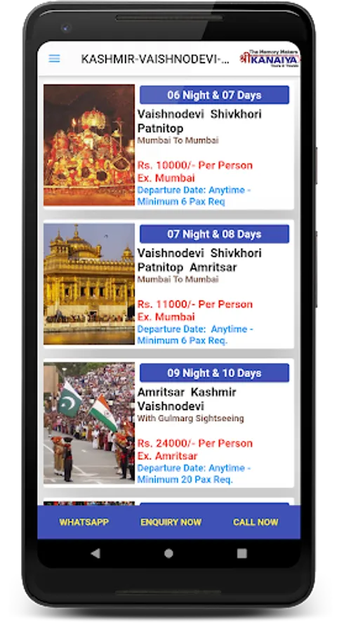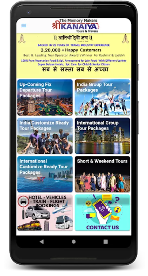 Your holiday plans are now just a click away. Get SHREE KANAIYA TOURS AND TRAVELS app on your phone today. Glance through the wide range of all inclusive, specially crafted Indian and International tours and choose your dream holiday.