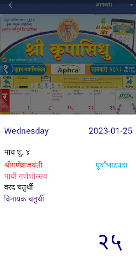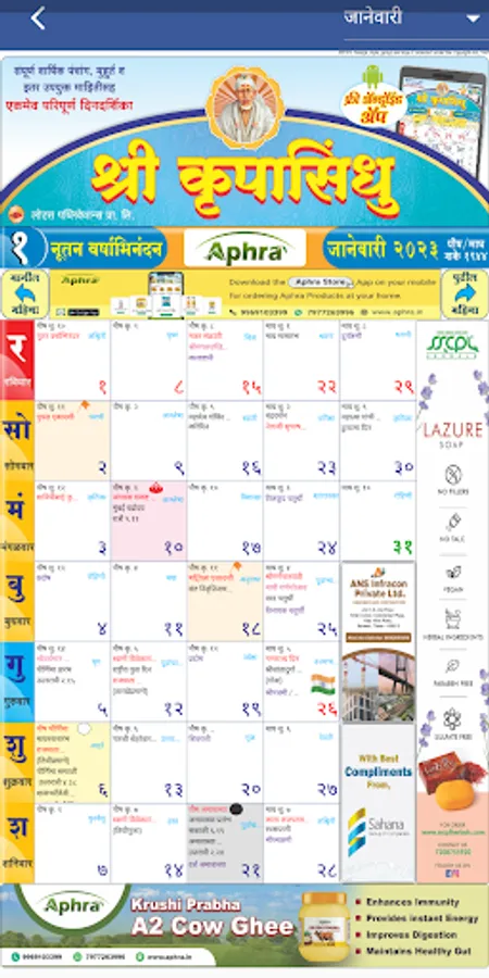 Shree Krupasindhu calendar 2023 mobile app is an authentic source of the Calendar, almanac, festivals, holidays and auspicious days. It is also the almanac for solar as well as lunar events. It shows lunar dates and events along with regular dates.