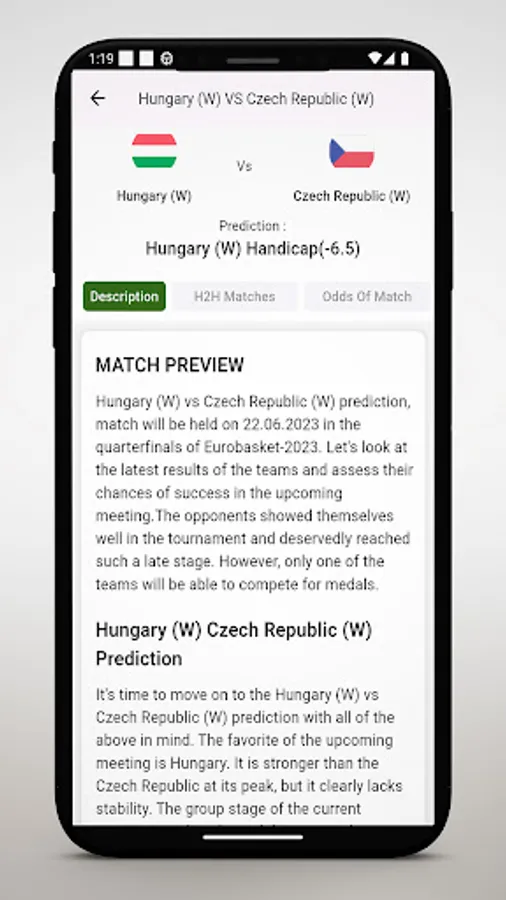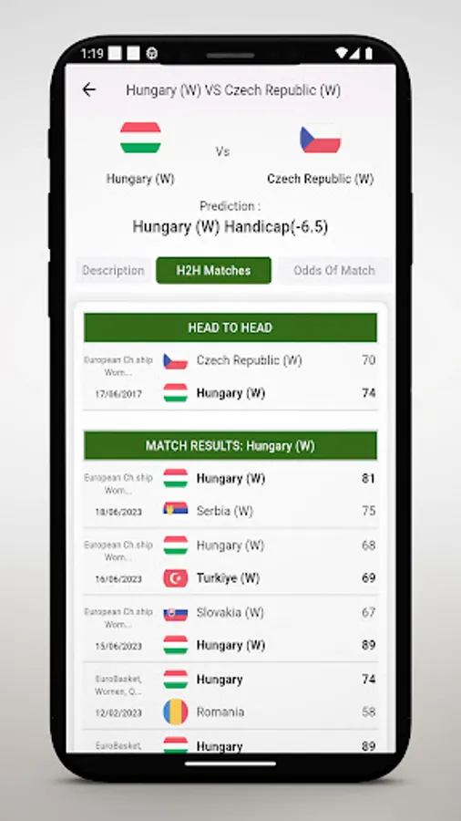This application offers bet tips of Basketball results.