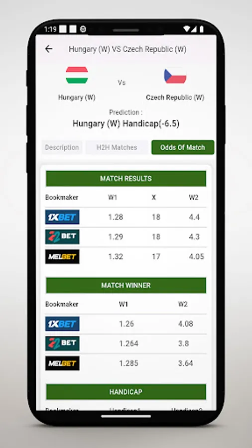 In addition, we offer daily betting tips for the different types of options available in the app: