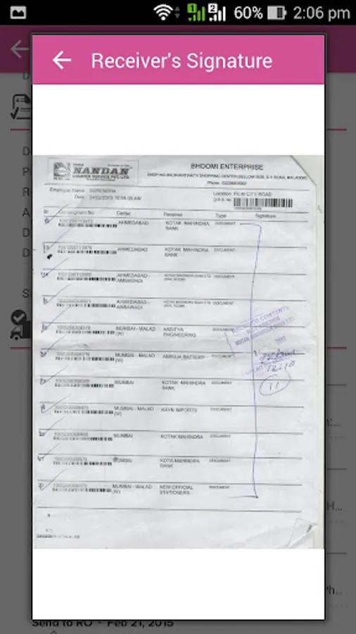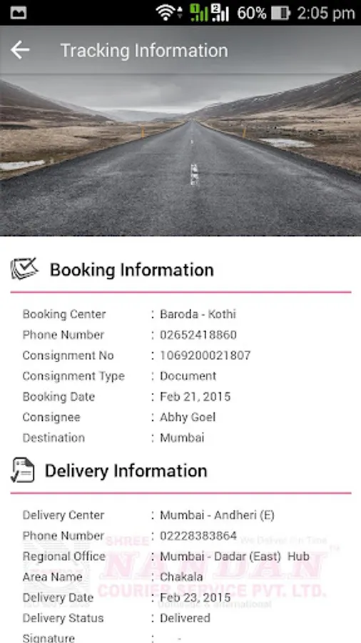* The App has a facility to scan bar code, so the user no need to input the consignment number.