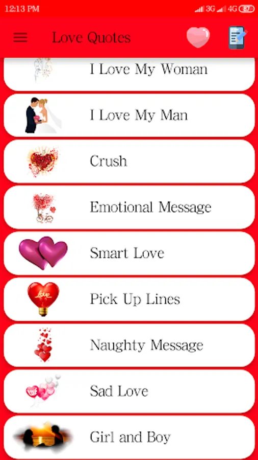 This Love Quotes app contains fifteen thousand plus ( 15,000 ) offline Love quotes and captions on following topics.