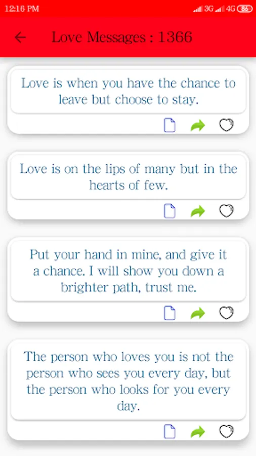 The Best love quotes collections for Romantic couples. This App contains captions and messages on love. Anyone can copy and share these beautiful quotes on Facebook, twitter, WhatsApp, email, SMS as well as in other Social Media.