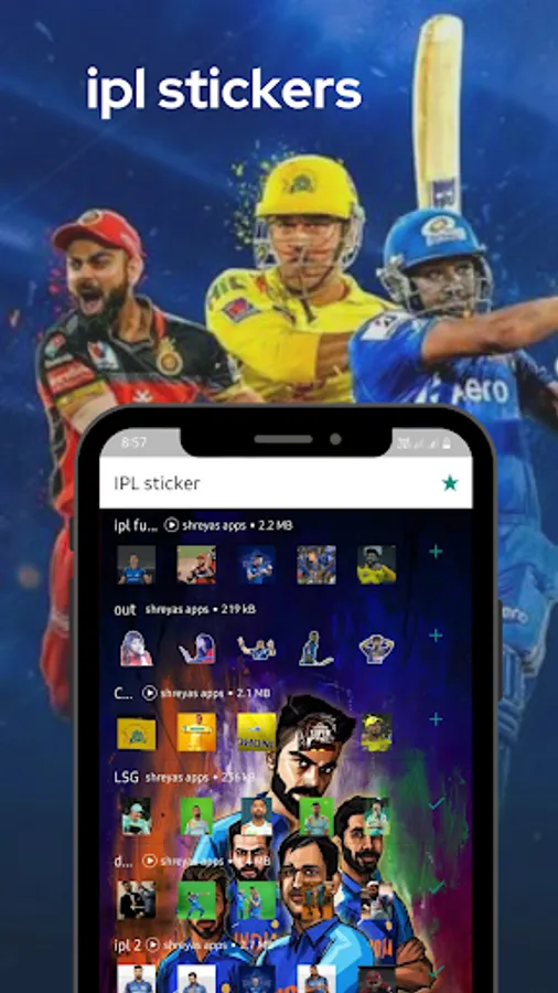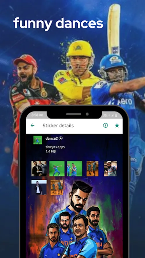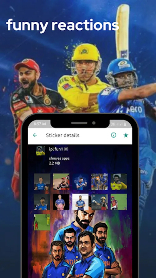 - famous trending, crunch moments IPL stickers, reaction stickers, dance stickers