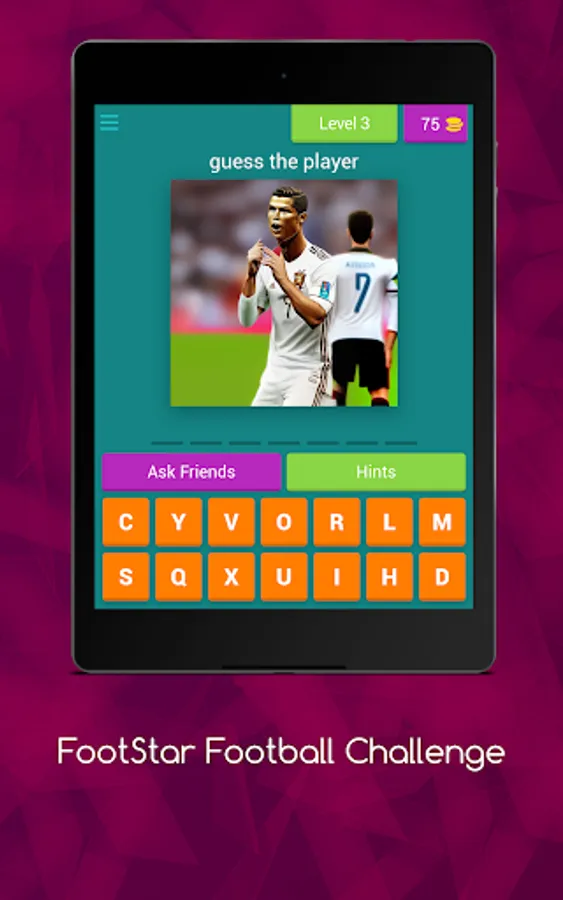 Are you a true football, soccer β½ fan? Put your knowledge to the test with Football Stars Guessing Game, the ultimate trivia challenge for soccer, football enthusiasts! Guess the names of the most iconic football players from around the world and prove that you're a true expert.