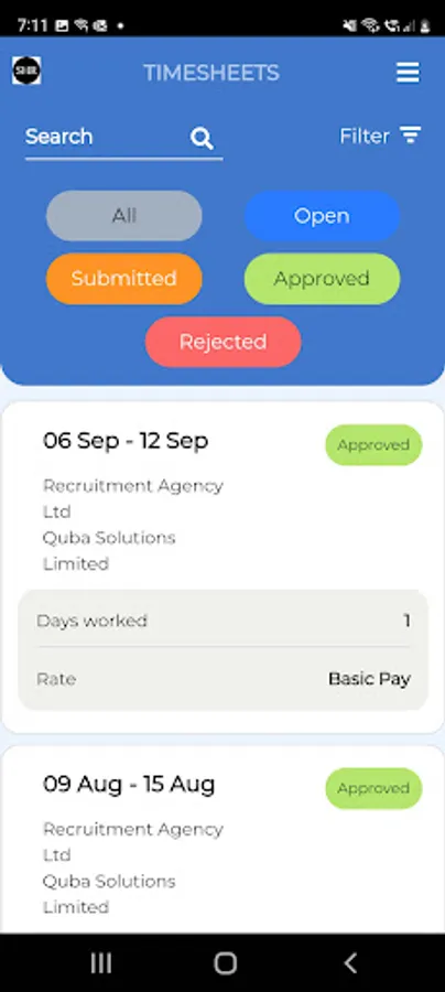 Allows SHR Group's clients to submit and approve timesheets conveniently from their mobile device. Candidates can submit units of work, Clients approve/reject with notification