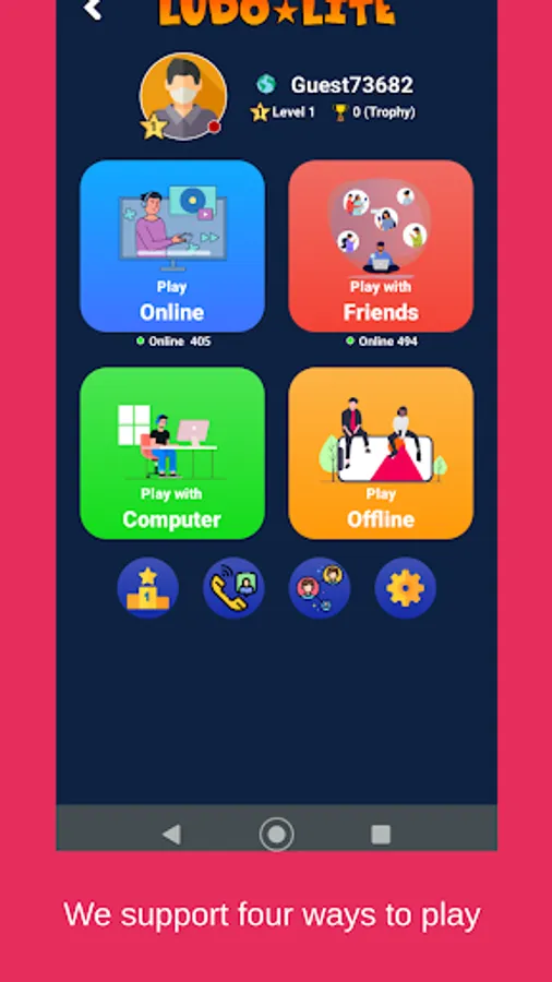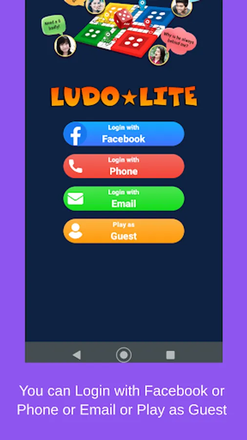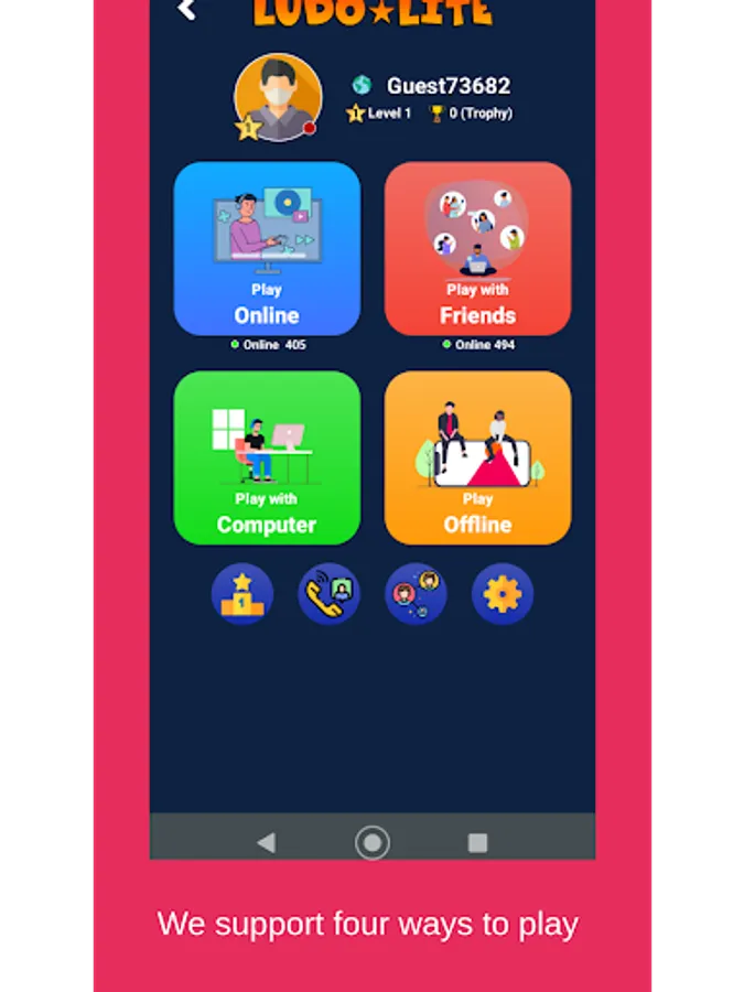 Ludo Lite is the modern version of the royal game of Parchisi. A Ludo game which was played between Indian kings and queens in ancient times. Roll the Ludo dice and move your tokens to reach the center of the Ludo board. Beat other players, become Winner.